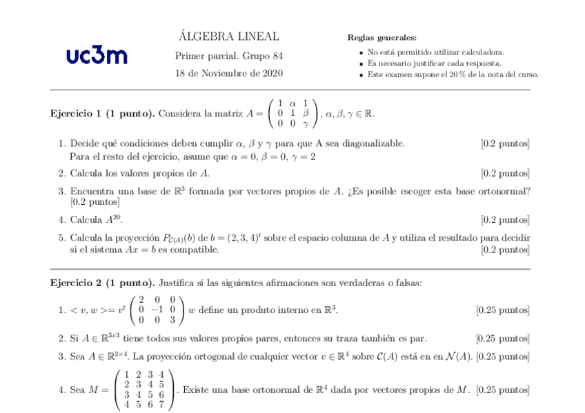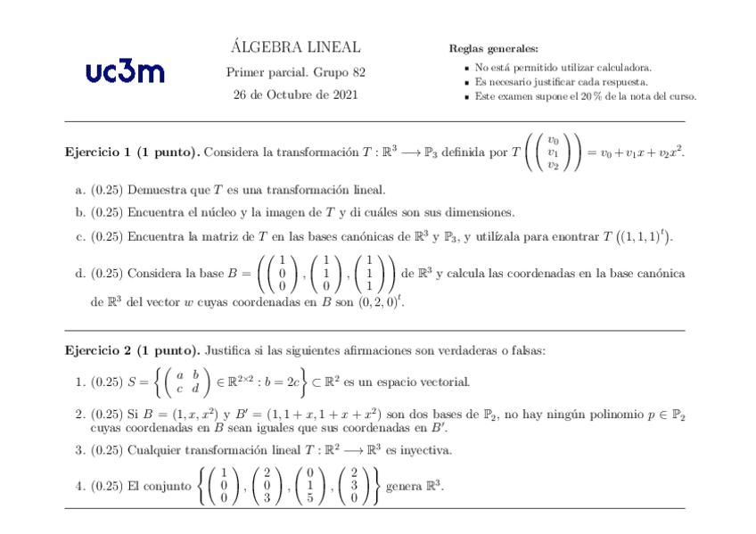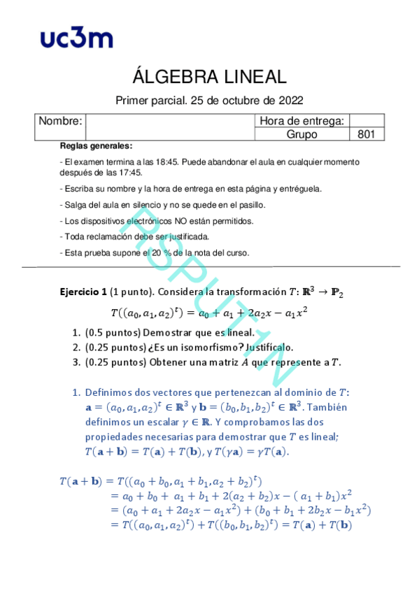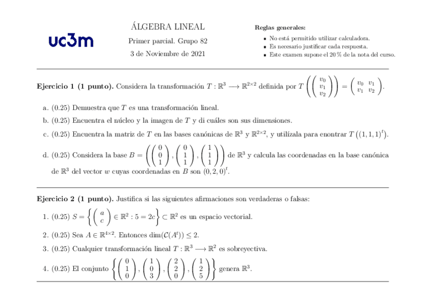 He publicado nuevos examenes de 1º Álgebra Lineal: 1º Parcial 2021-22 con soluciones.pdf