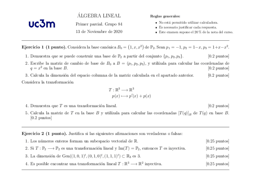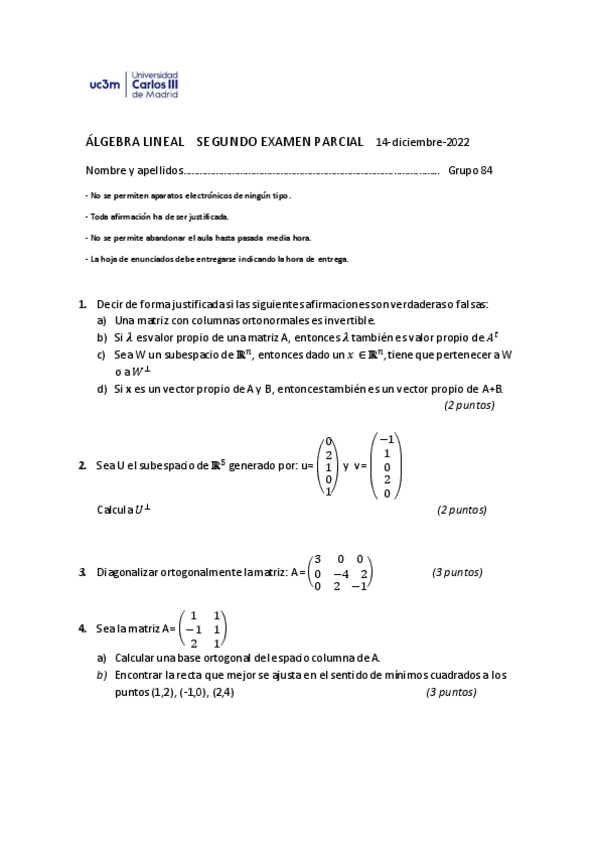 He publicado nuevos examenes de 1º Álgebra Lineal: 2º parcial 2021-22 con soluciones.pdf