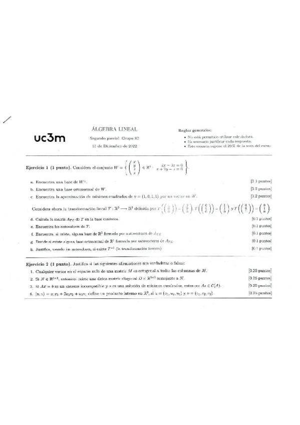 He publicado nuevos examenes de 1º Álgebra Lineal: 2º parcial 2022-23 con soluciones.pdf