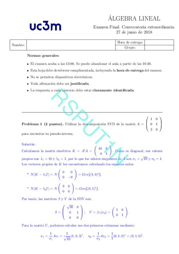 He publicado nuevos examenes de 1º Álgebra Lineal: Final 2022-23 con soluciones.pdf