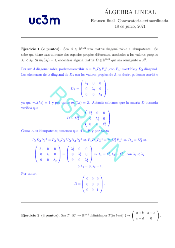 He publicado nuevos examenes de 1º Álgebra Lineal: Final 2021-22 con soluciones.pdf
