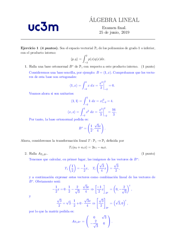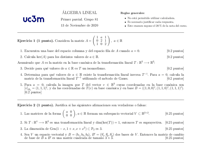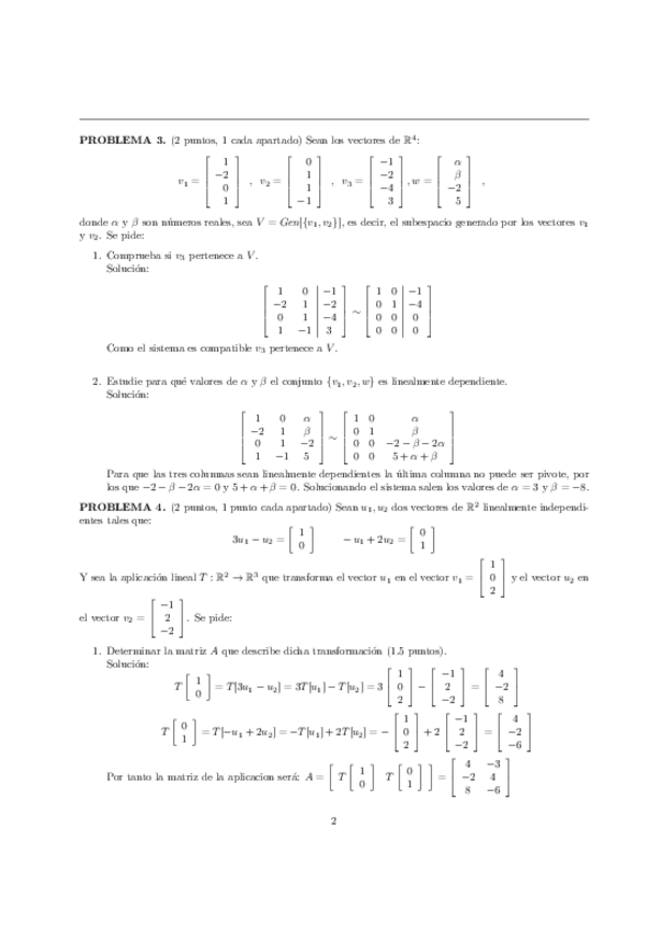 Exámenes de Álgebra Lineal