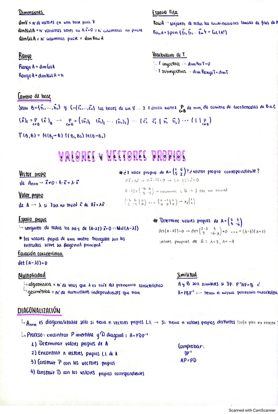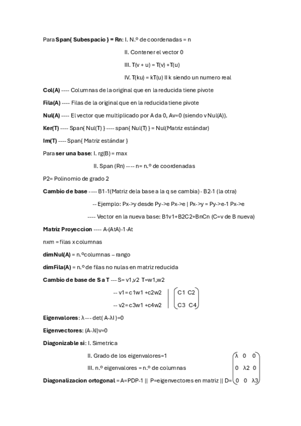 Resumen completo de Álgebra Lineal por temas, para el examen final.