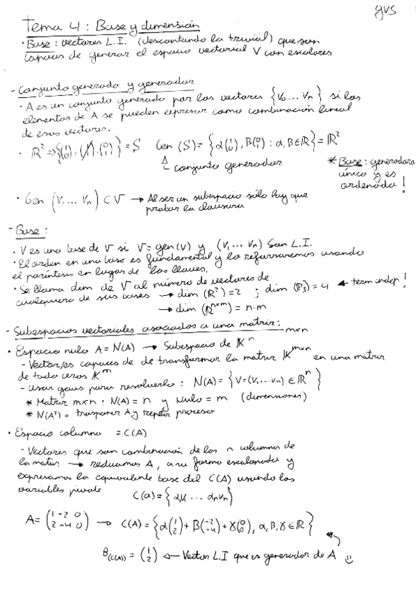 Apuntes tema 3 espacios vectoriales de álgebra lineal, con ejemplos.
