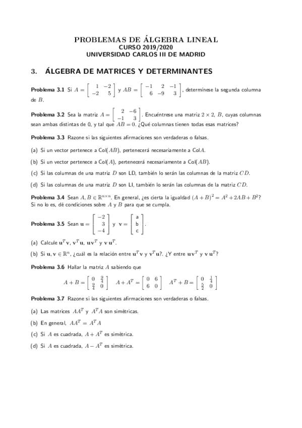 He publicado nuevos ejercicios de 1º Álgebra Lineal: Problemas
