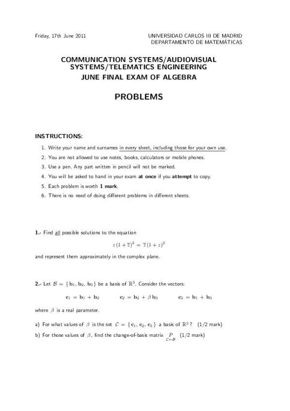 He publicado nuevos examenes de 1º Álgebra Lineal: Final-2016.pdf