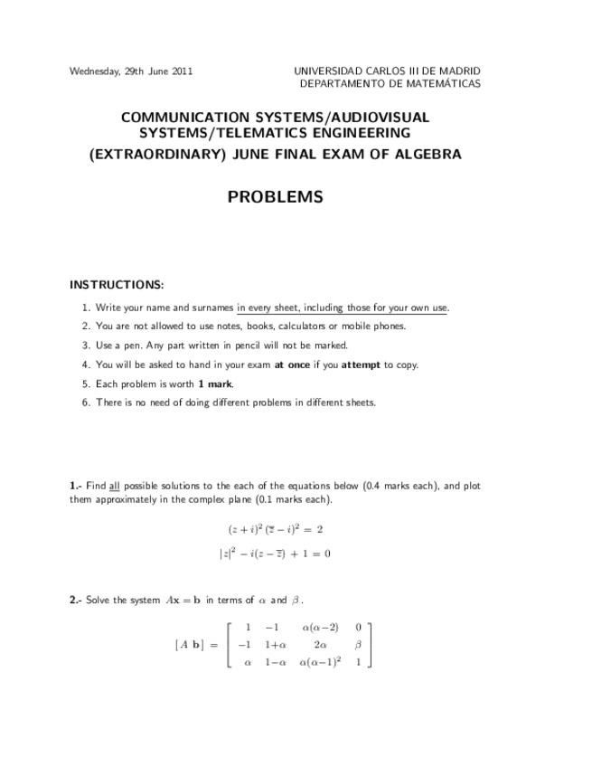 He publicado nuevos examenes de 1º Álgebra Lineal: Extraordinario-2019.pdf