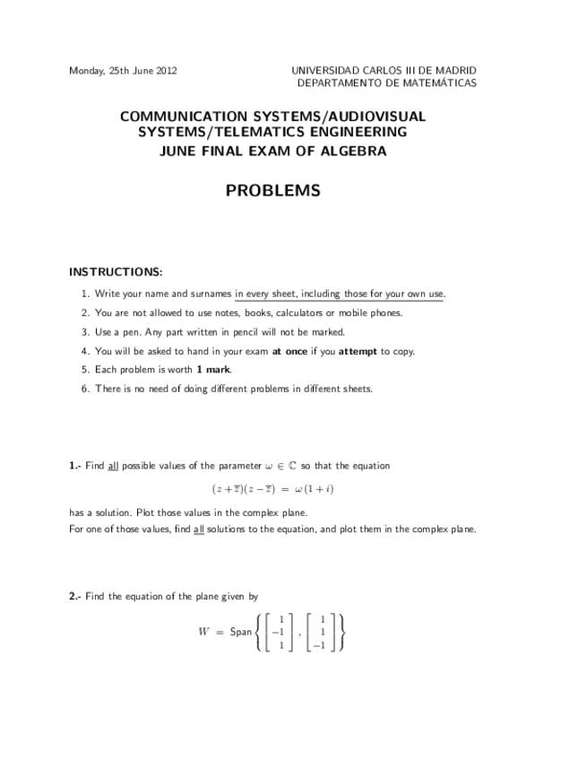 He publicado nuevos examenes de 1º Álgebra Lineal: 2012-13-Solucion-Examen-Final-Enero-A.pdf