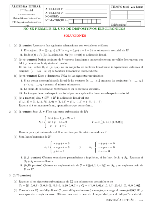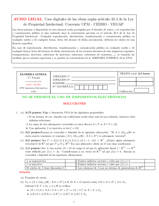 He publicado nuevos apuntes de 1º Álgebra Lineal: Examenes Resueltos Parcial 1
