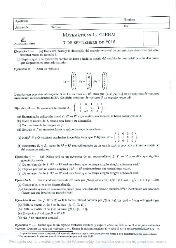 He publicado nuevos examenes de 1º Álgebra Lineal: Examen-Septiembre-2019.pdf