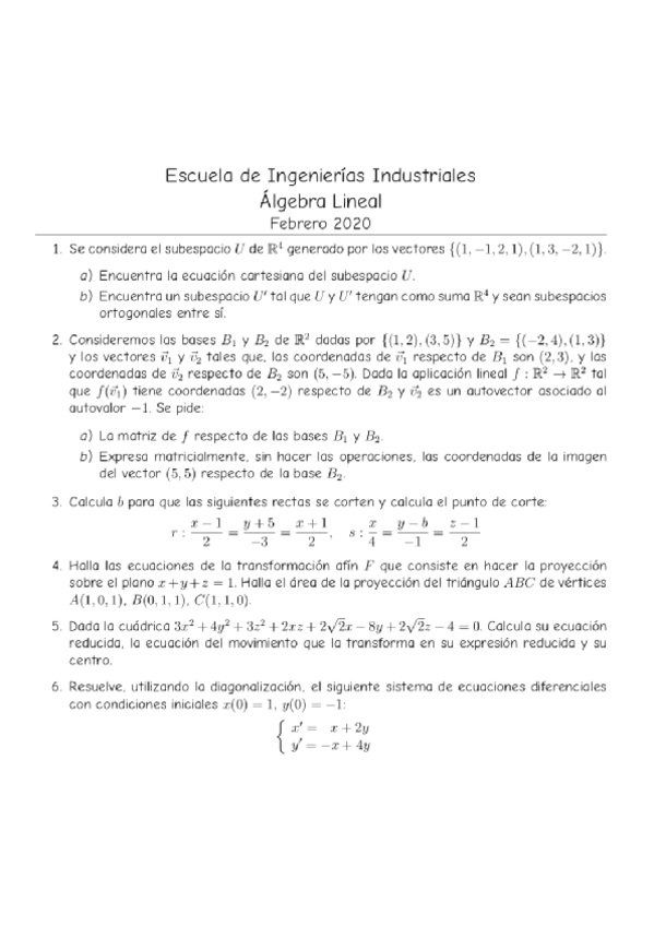 He publicado nuevos examenes de 1º Álgebra Lineal: Examen-Febrero-2020.pdf
