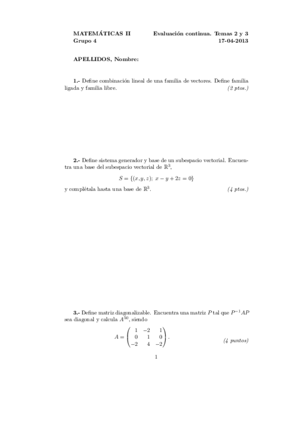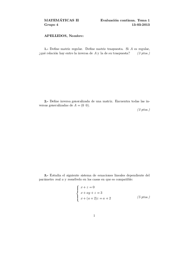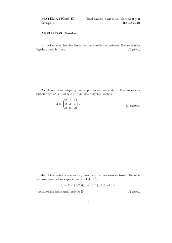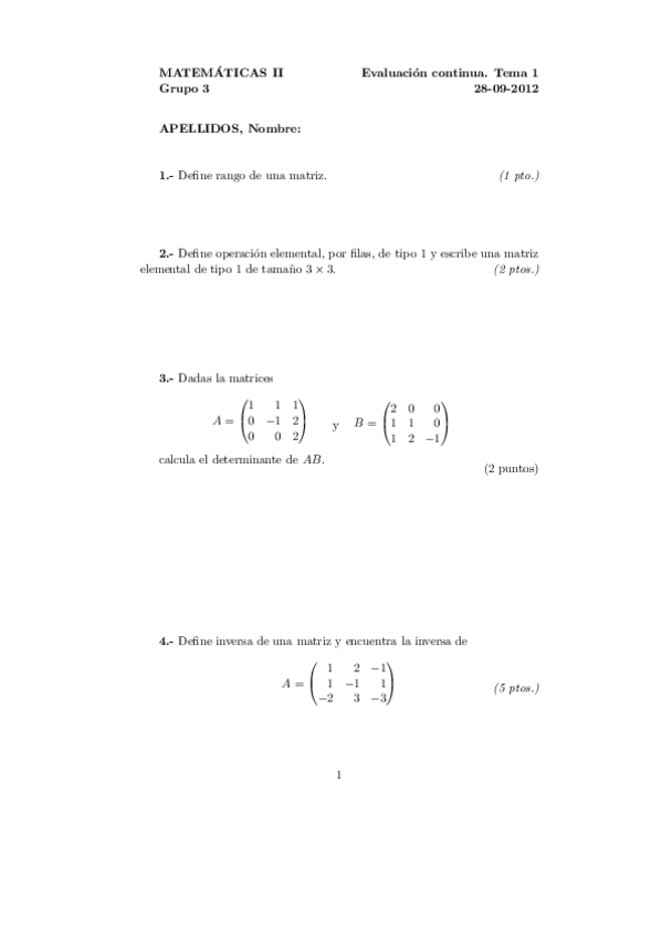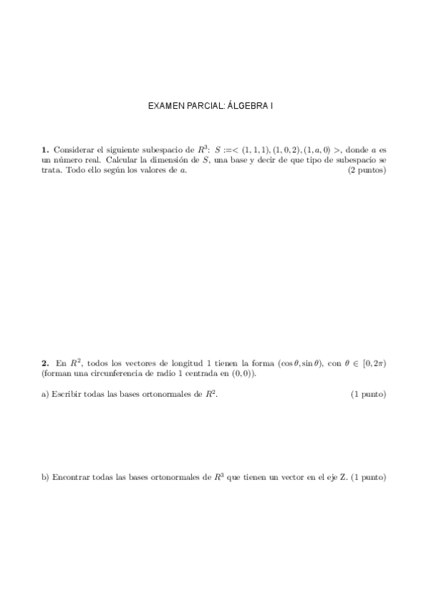 Exámenes Álgebra Primer Parcial
