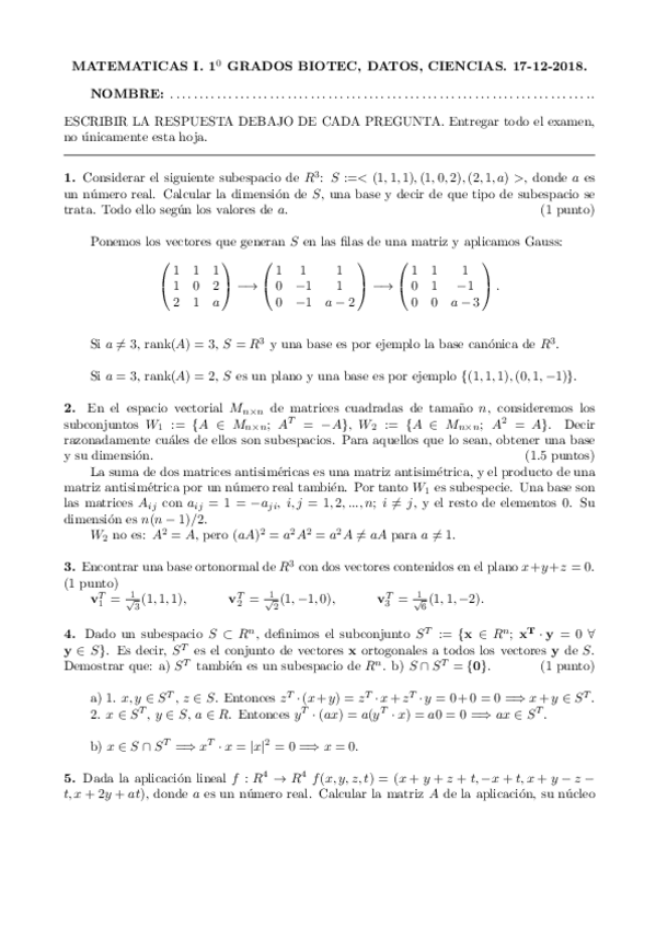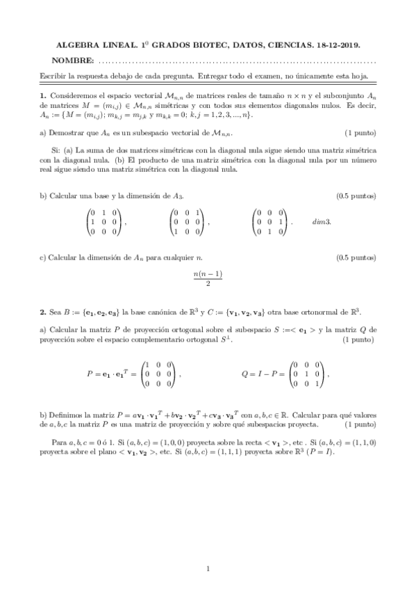 1ºBIOTEC - Álgebra LIneal
