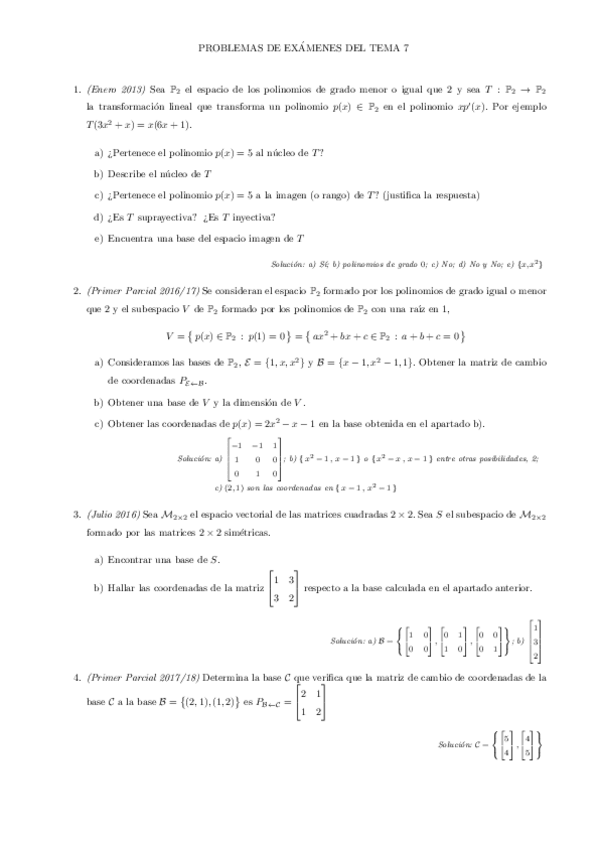 Exámenes Álgebra Lineal