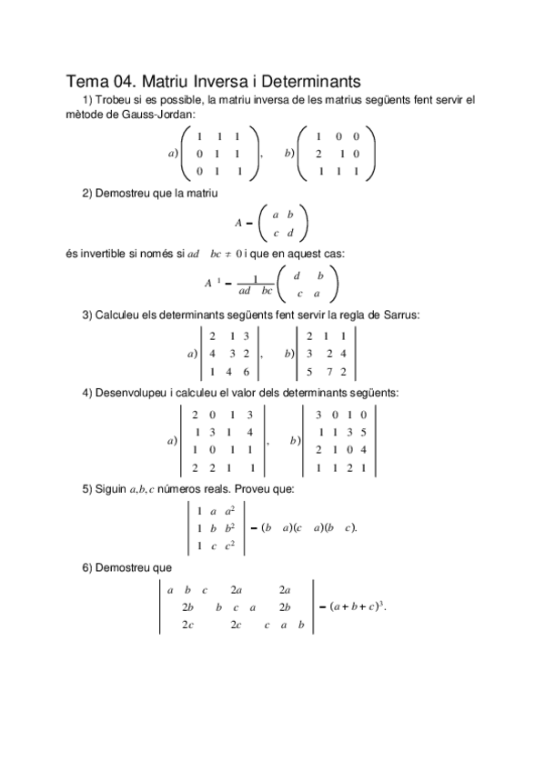 He publicado nuevos ejercicios de 1º Álgebra Lineal: Problemes