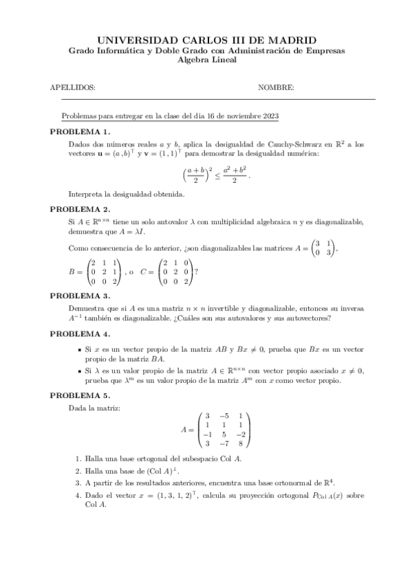 He publicado nuevos ejercicios de 1º Álgebra Lineal: Hoja-problemas1.pdf