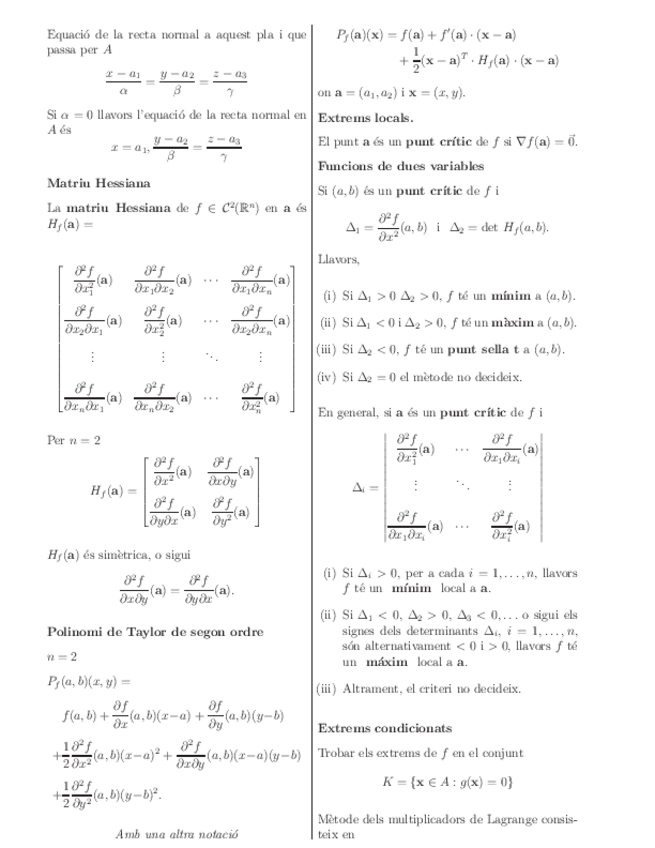 He publicado nuevos otros de 1º Álgebra y Cálculo Multivariable: Formularifuncions-de-varies-variables.pdf