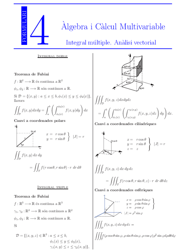 He publicado nuevos apuntes de 1º Álgebra y Cálculo Multivariable: Formulariintegracio-multiple.pdf