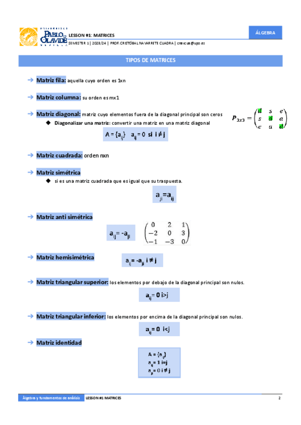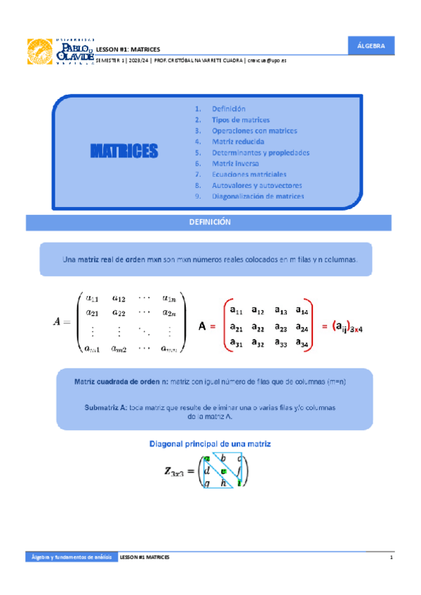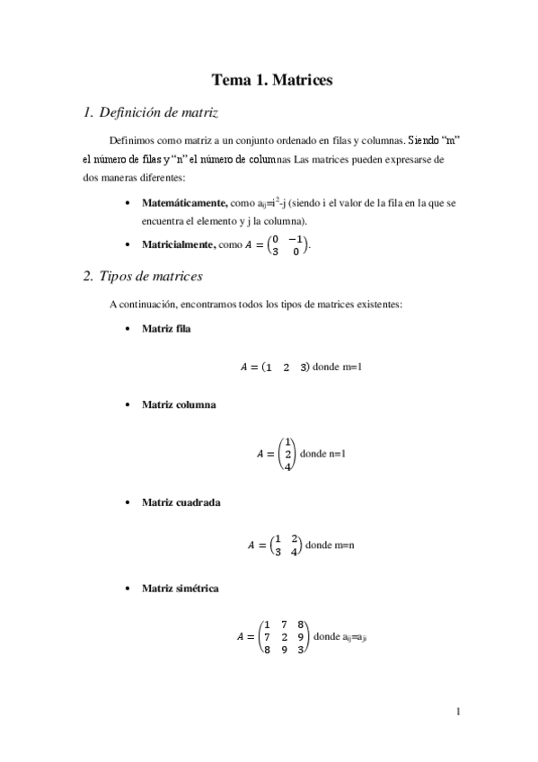 He publicado nuevos apuntes de 1º Álgebra y Fundamentos de Análisis: 1.-MATRICES.pdf