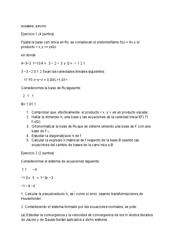 Exámenes resueltos álgebra