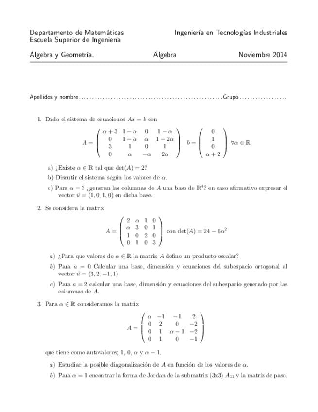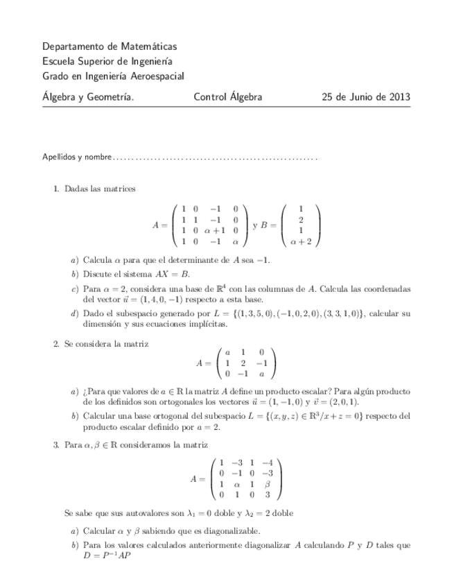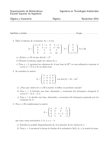 Exámenes Algebra y Geometría