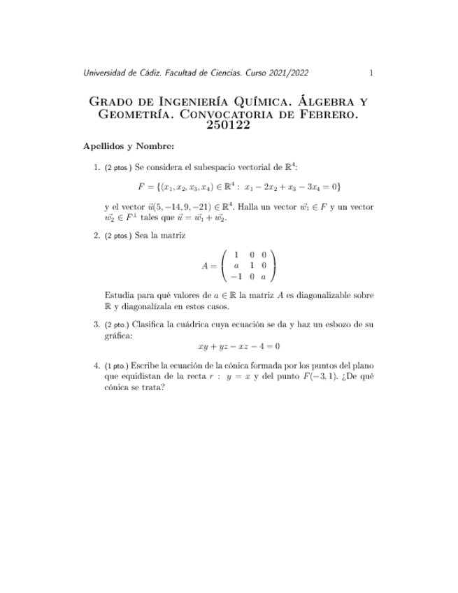He publicado nuevos examenes de 1º Álgebra y Geometría: Exámenes 2022