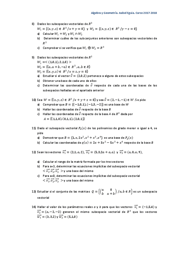 He publicado nuevos ejercicios de 1º Álgebra y Geometría: TEMA-ESPACIOS-VECTORIALESEjercicios.pdf