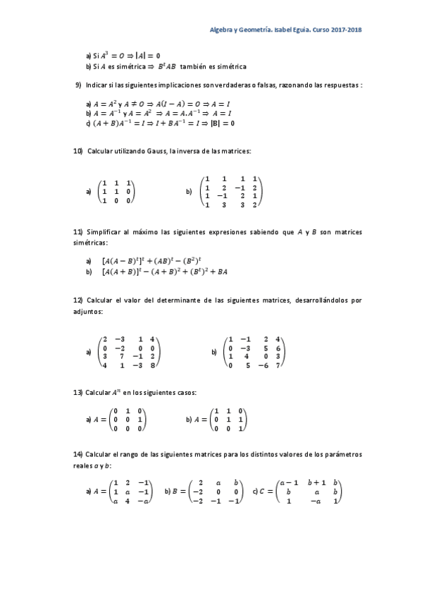 He publicado nuevos ejercicios de 1º Álgebra y Geometría: TEMA1-MATRICESEjercicios.pdf