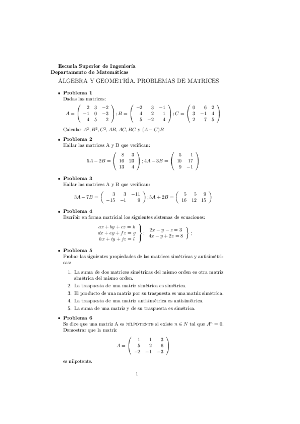 He publicado nuevos ejercicios de 1º Álgebra y Geometría: Ejercicios-y-apuntes-Algebra.pdf
