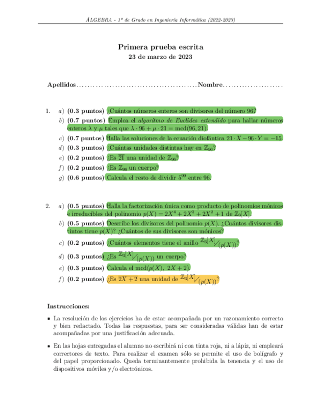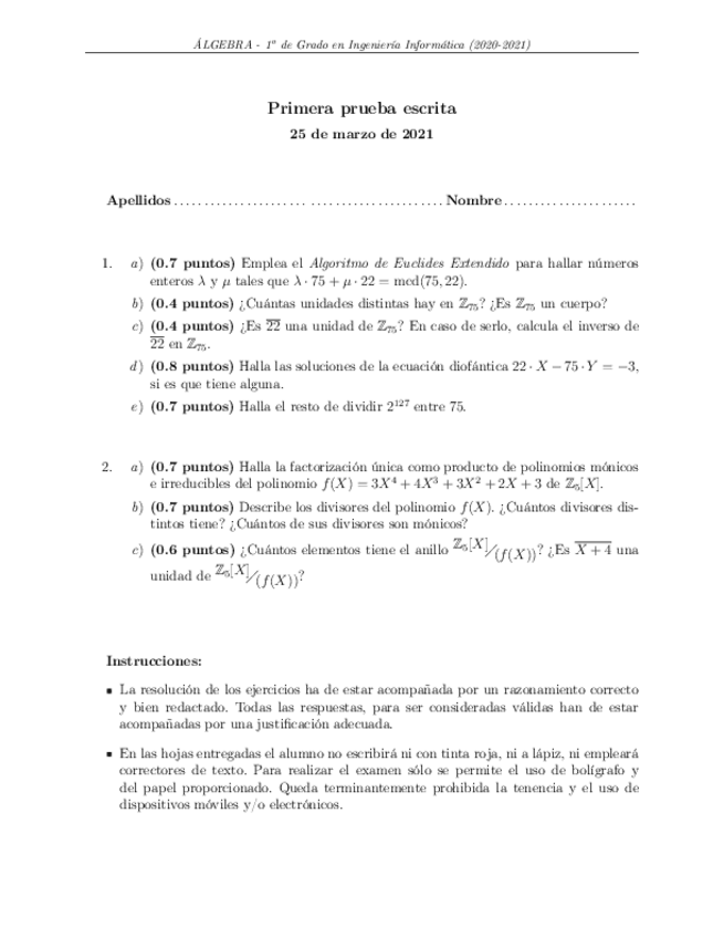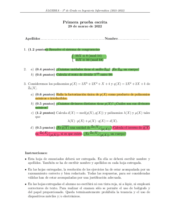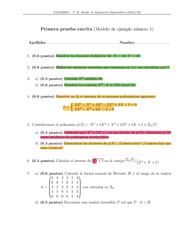 He publicado nuevos examenes de 1º Álgebra: exámenes
