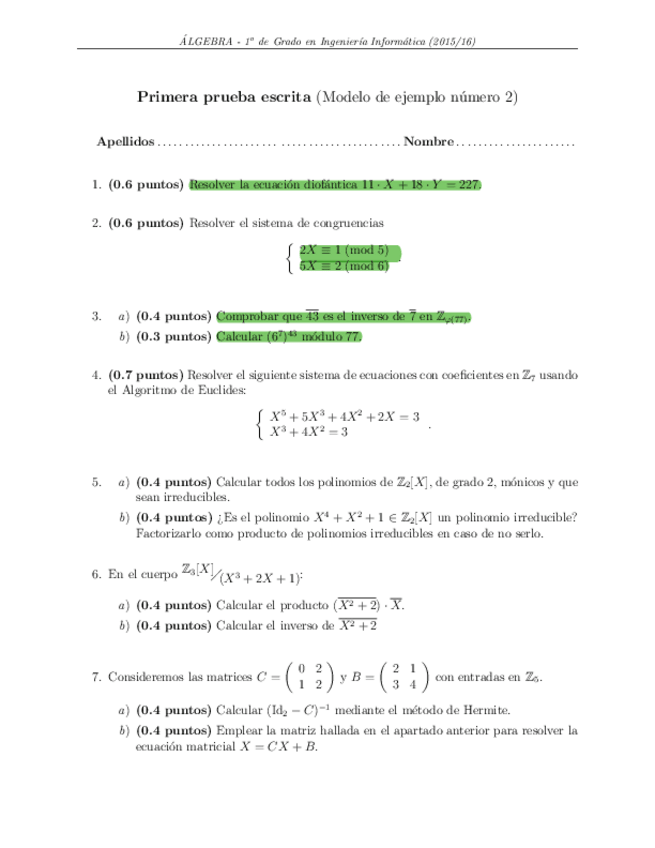 He publicado nuevos examenes de 1º Álgebra: Modelos exámenes parciales