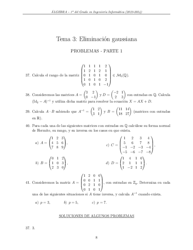 He publicado nuevos ejercicios de 1º Álgebra: Resueltos Tema 3: Eliminación gaussiana
