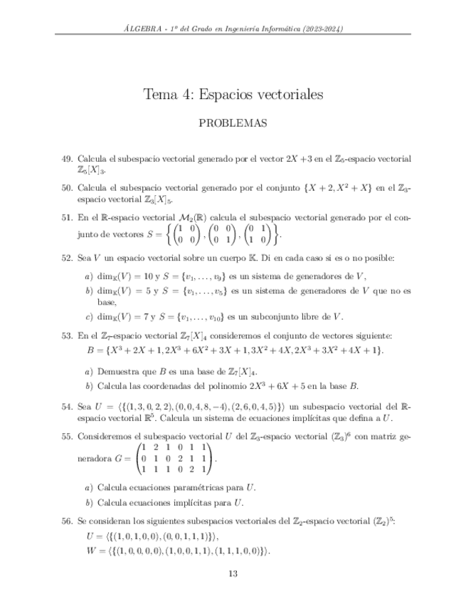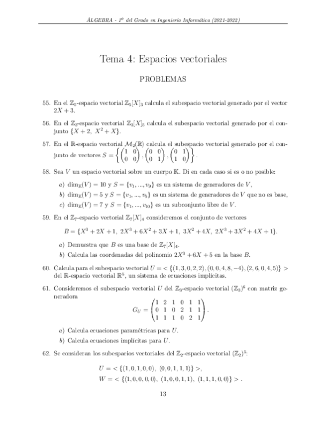 Resueltos Tema 4: Espacios vectoriales