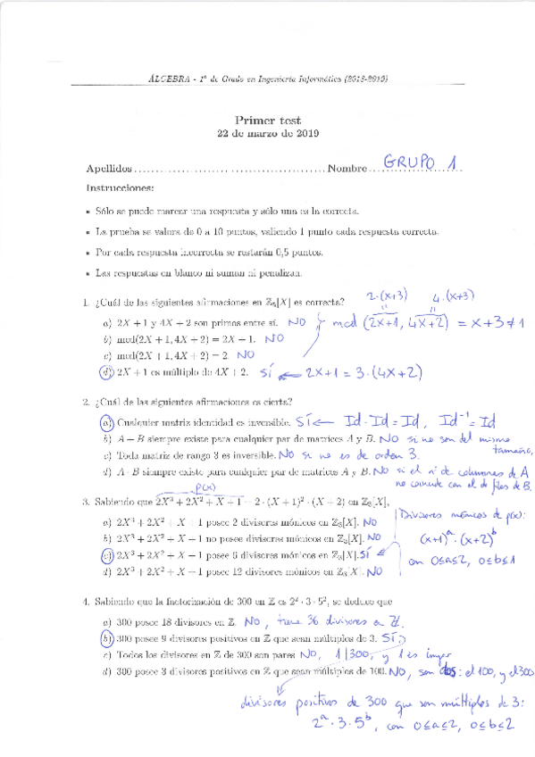 He publicado nuevos examenes de 1º Álgebra: EXAMENES RESUELTOS