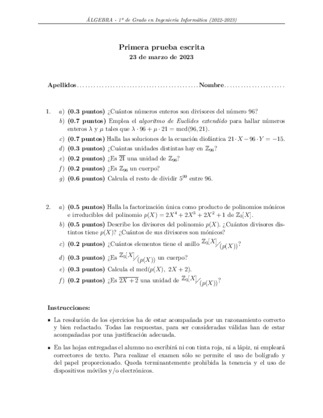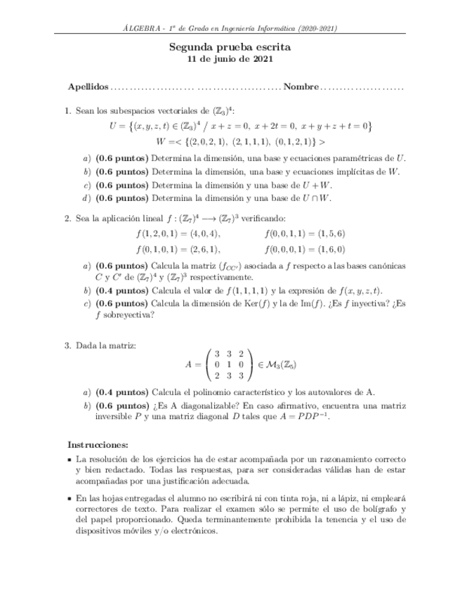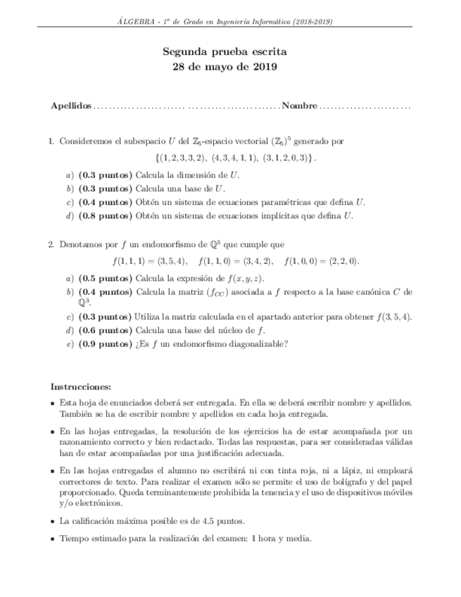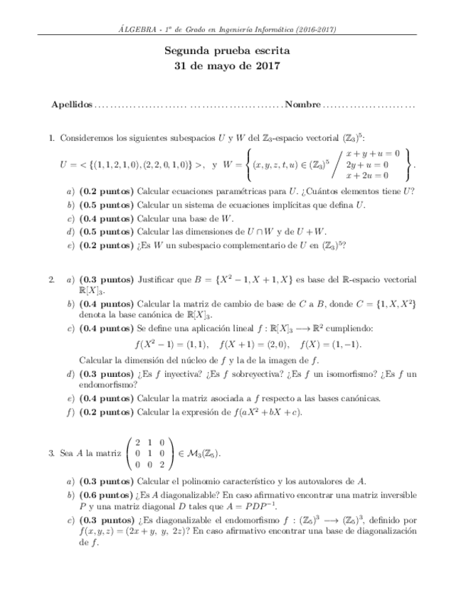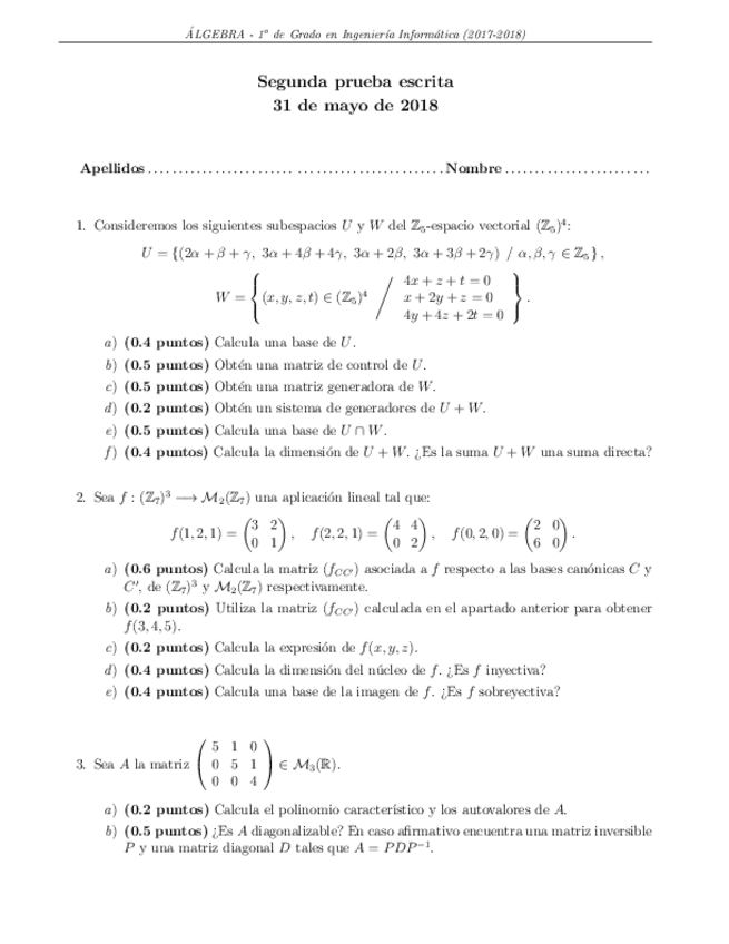 He publicado nuevos apuntes de 1º Álgebra: Examenes 2ª parcial
