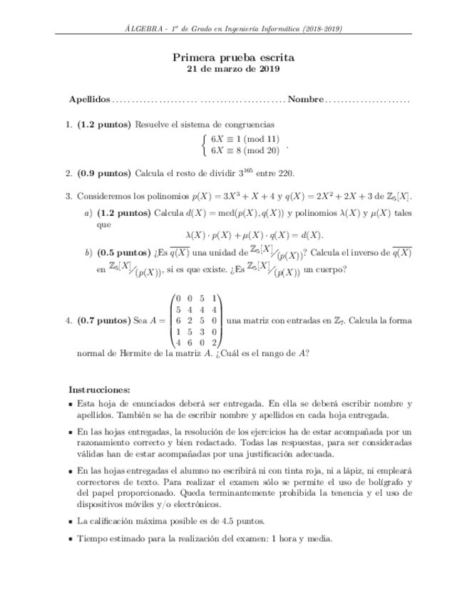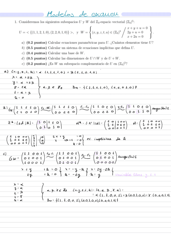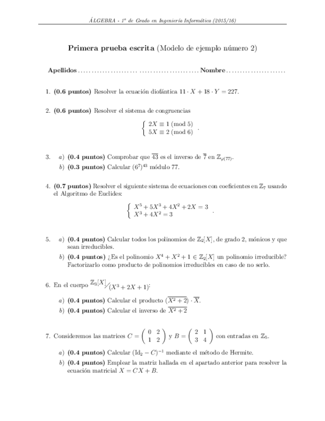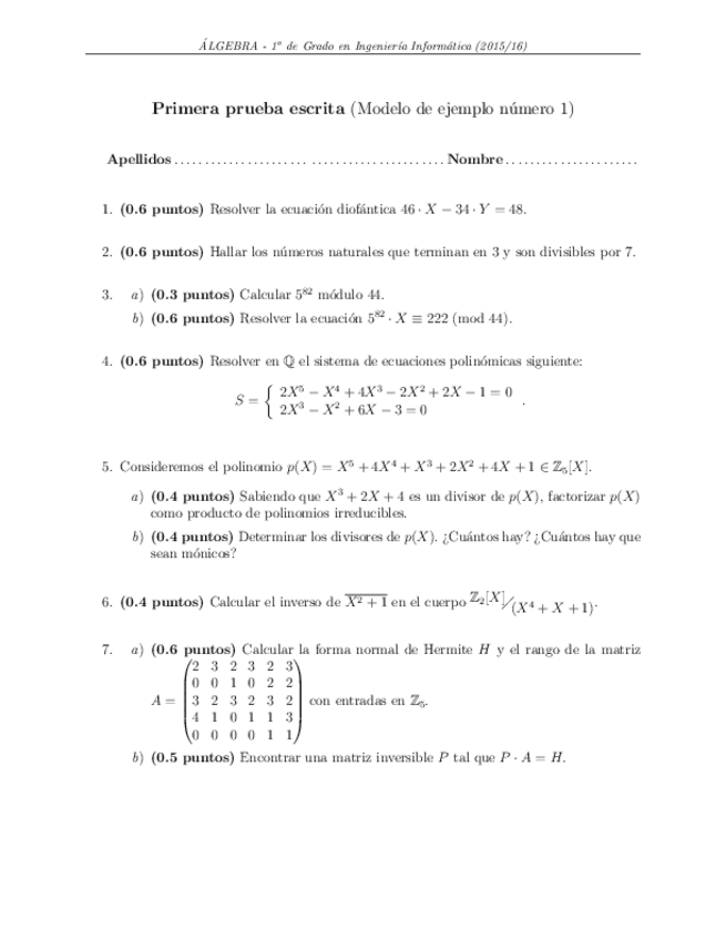 He publicado nuevos examenes de 1º Álgebra: Modelos exámenes finales