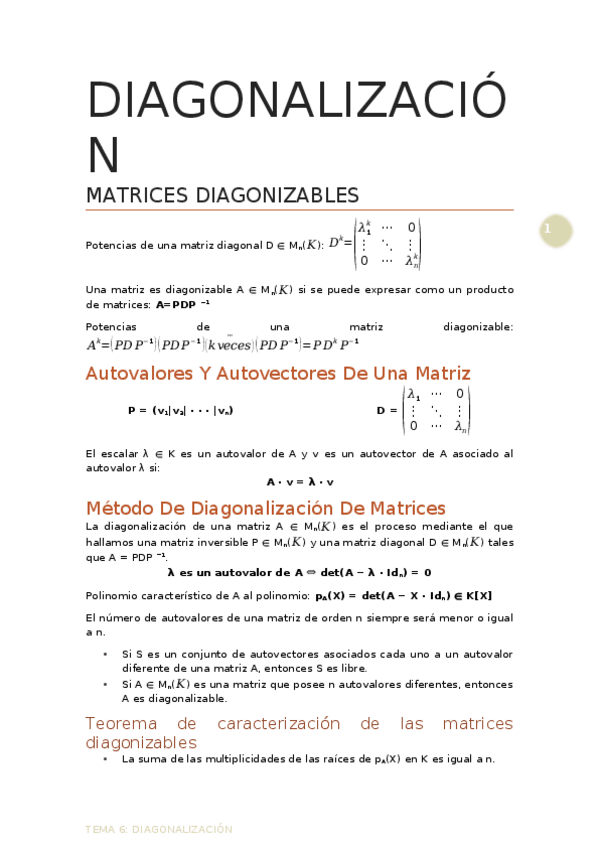 He publicado nuevos apuntes de 1º Álgebra: TEMA 6 RESUMEN