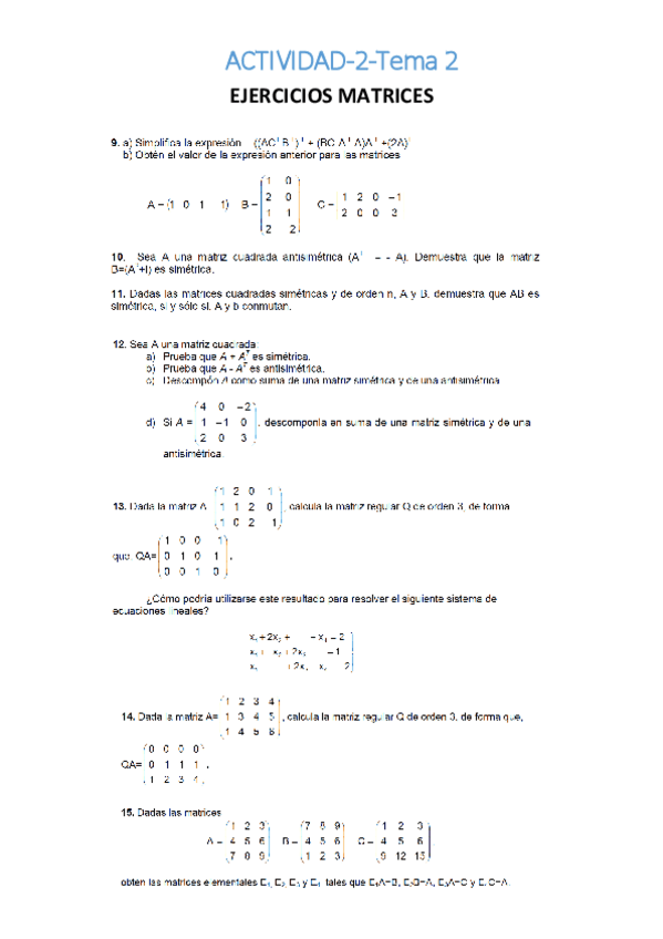 He publicado nuevos apuntes de 1º Álgebra: Ejercicios propuestos (2)