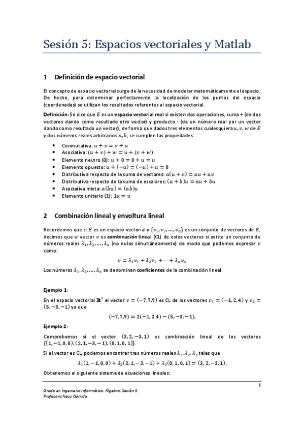 He publicado nuevos apuntes de 1º Álgebra: TEMA4-Espacio Vectorial.pdf