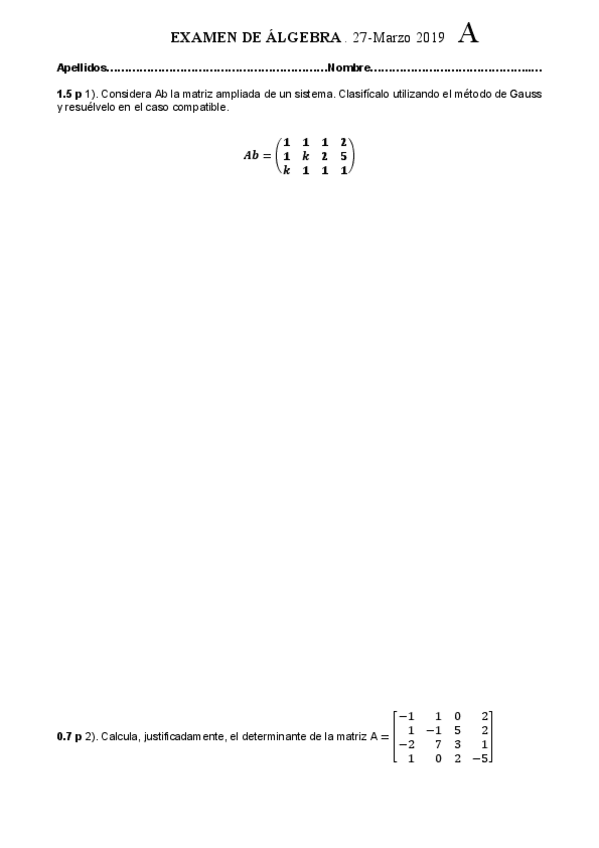 He publicado nuevos examenes de 1º Álgebra: 1º Control Álgebra 2024.pdf