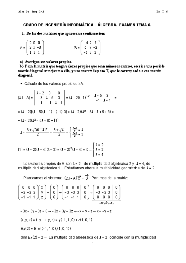 He publicado nuevos examenes de 1º Álgebra: Exámenes resueltos paso a paso