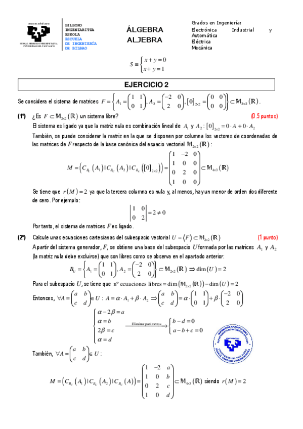 He publicado nuevos examenes de 1º Álgebra: 2024-2025-ENERO-SOLUCION.pdf