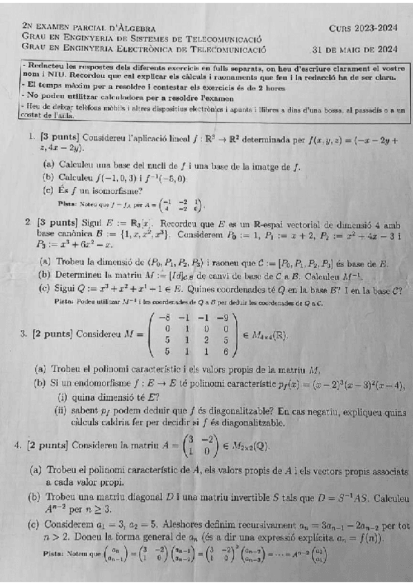 He publicado nuevos examenes de 1º Álgebra: Segon-parcial-2024-Algebra.pdf