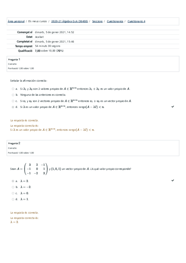 Cuestionarios Álgebra