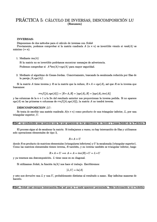 He publicado nuevos apuntes de 1º Álgebra: LU.pdf