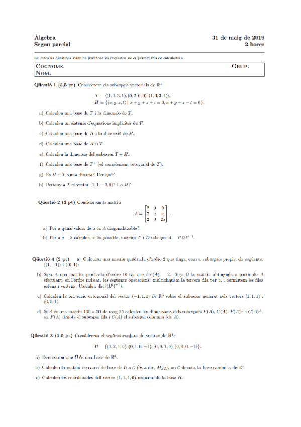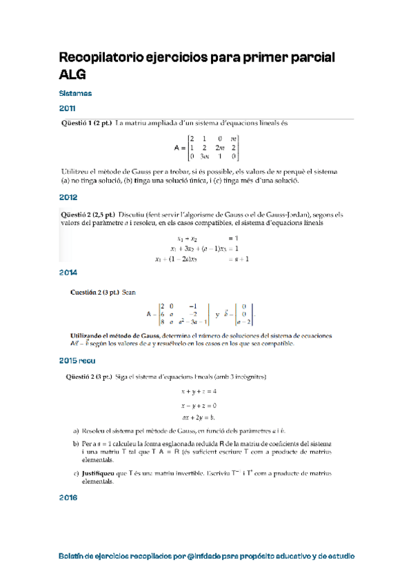 Esta es una guía con los pasos para poder hacer los ejercicios del segundo parcial de Álgebra. He intentado recopilar todos los tipos de ejercicios basándome en los exámenes de años anteriores