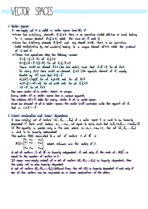 He publicado nuevos apuntes de 1º Álgebra: TEMA 4. ESPACIOS VECTORIALES APUNTES DETALLADOS + EJERCICIOS EXPLICATIVOS