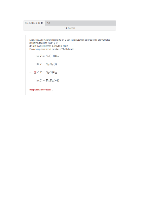 Test 2: Matrices y Operaciones elementales