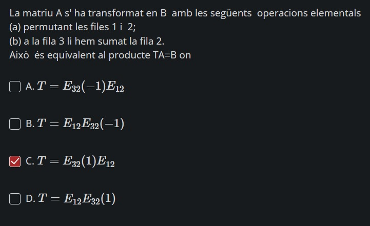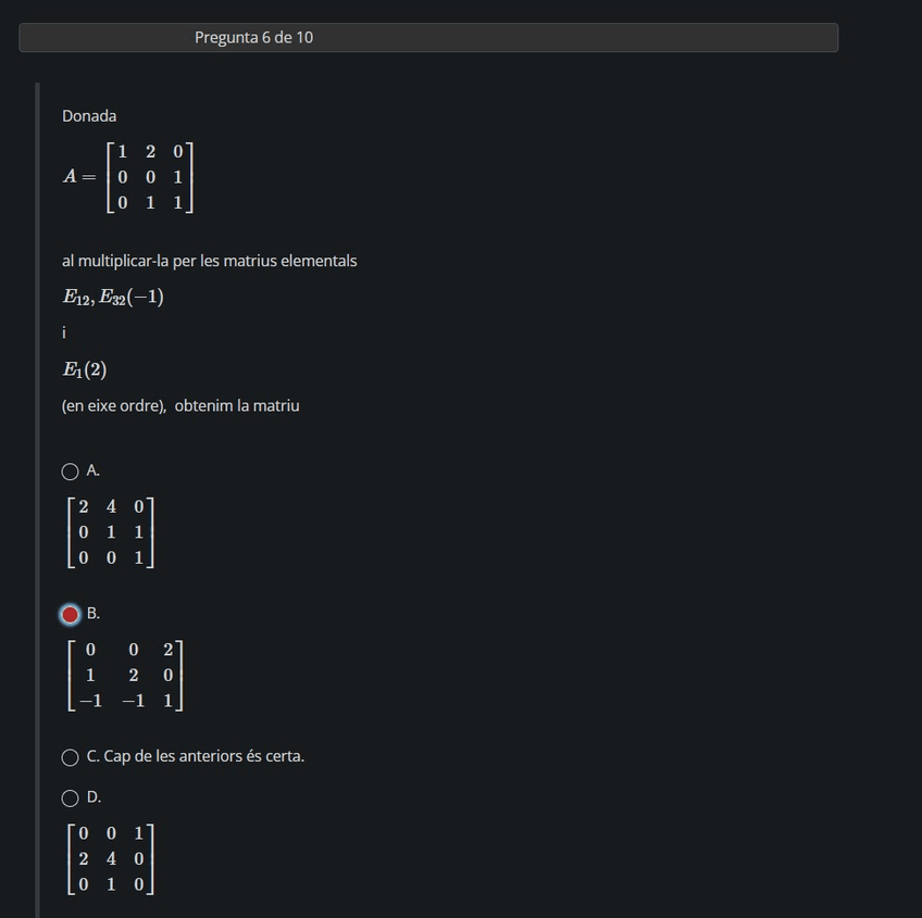 He publicado nuevos test de 1º Álgebra: Test-2-Matrices-y-Operaciones-elementales-2024-25.pdf