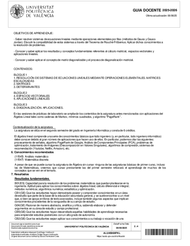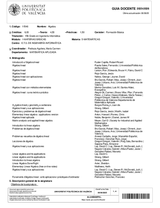 Algebra Guía docente 2025-2026
